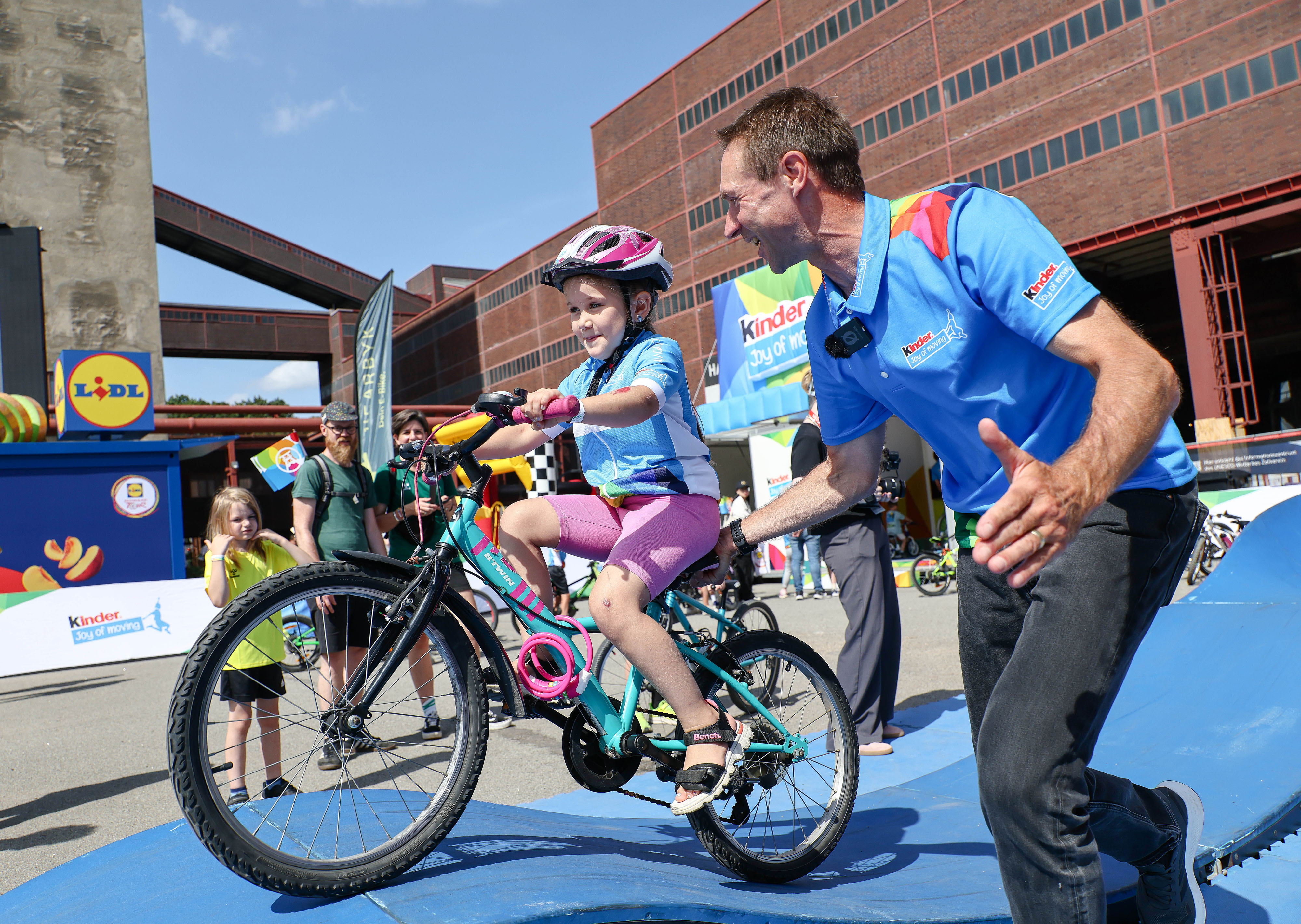 "kinder Joy of Moving mini tour" beim Start der Lidl Deutschland Tour 2025 in Essen