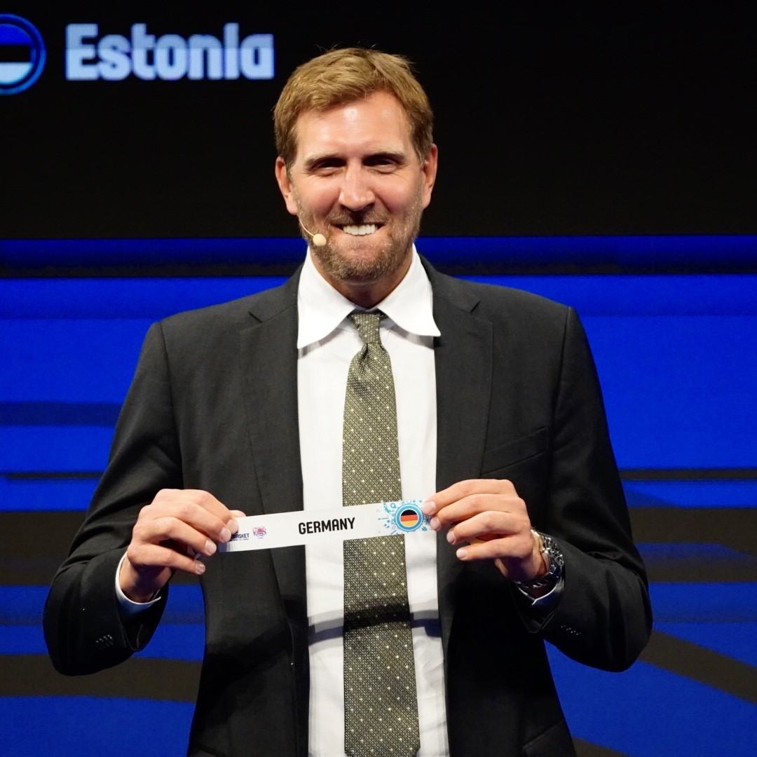 Basketballstar Dirk Nowitzki bei der Auslosung zur FIBA EroBasket 2022 in Köln