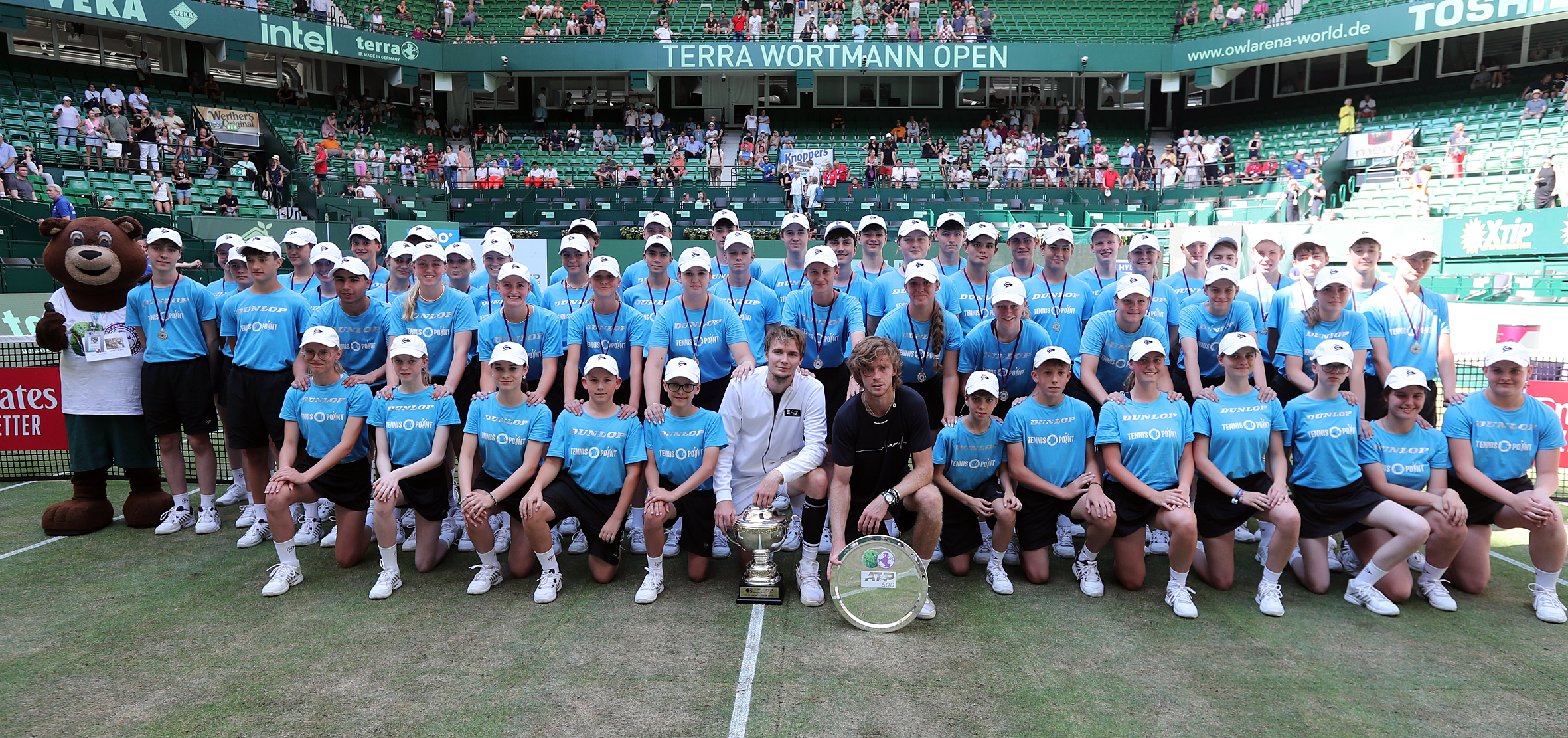 Die Ballkinder im Gruppenbild mit Sieger Alexander Bublik und Finalist Andrey Rublev.