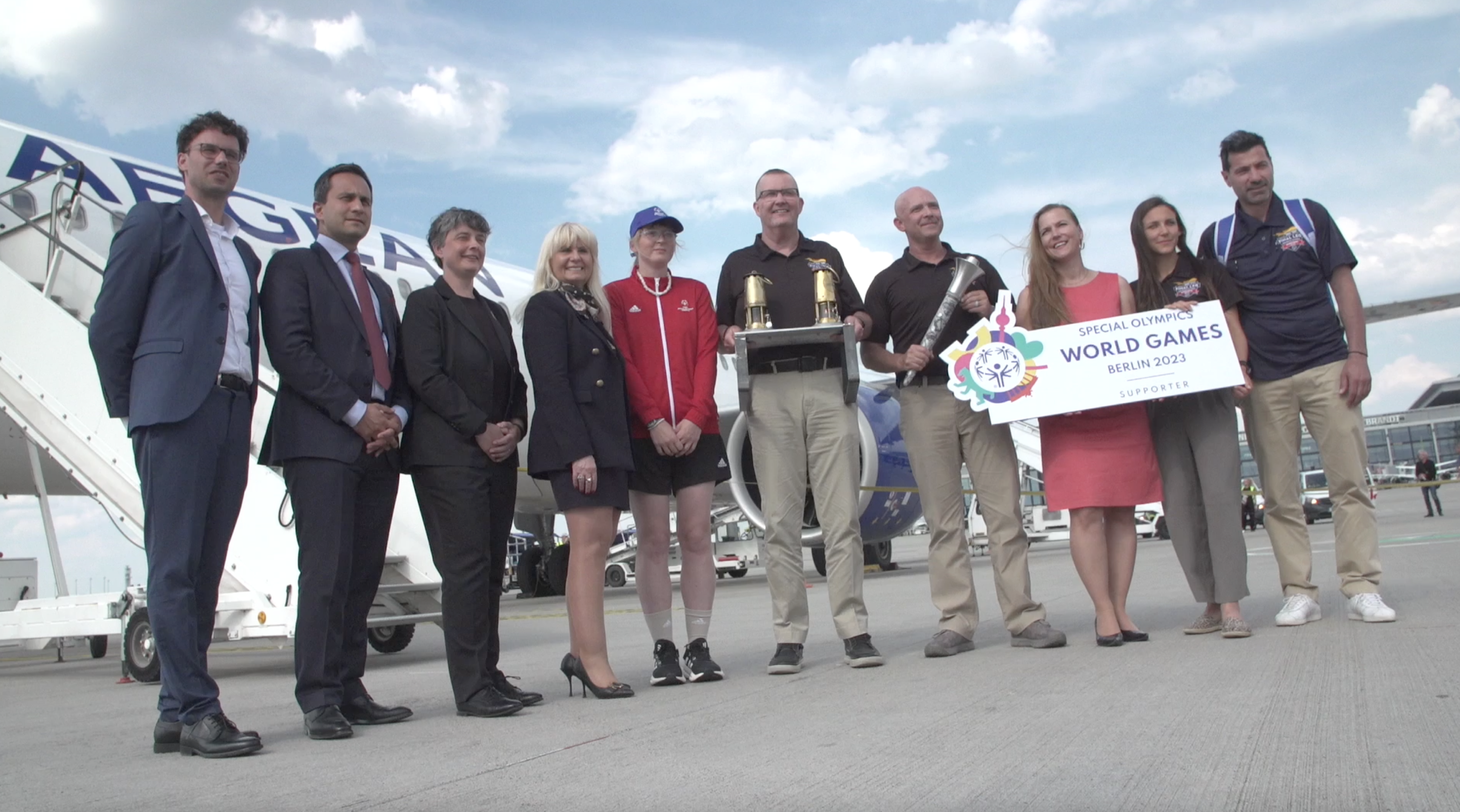 Footage von der Ankunft der "Flame of Hope" am Flughafen Brandenburg Berlin.