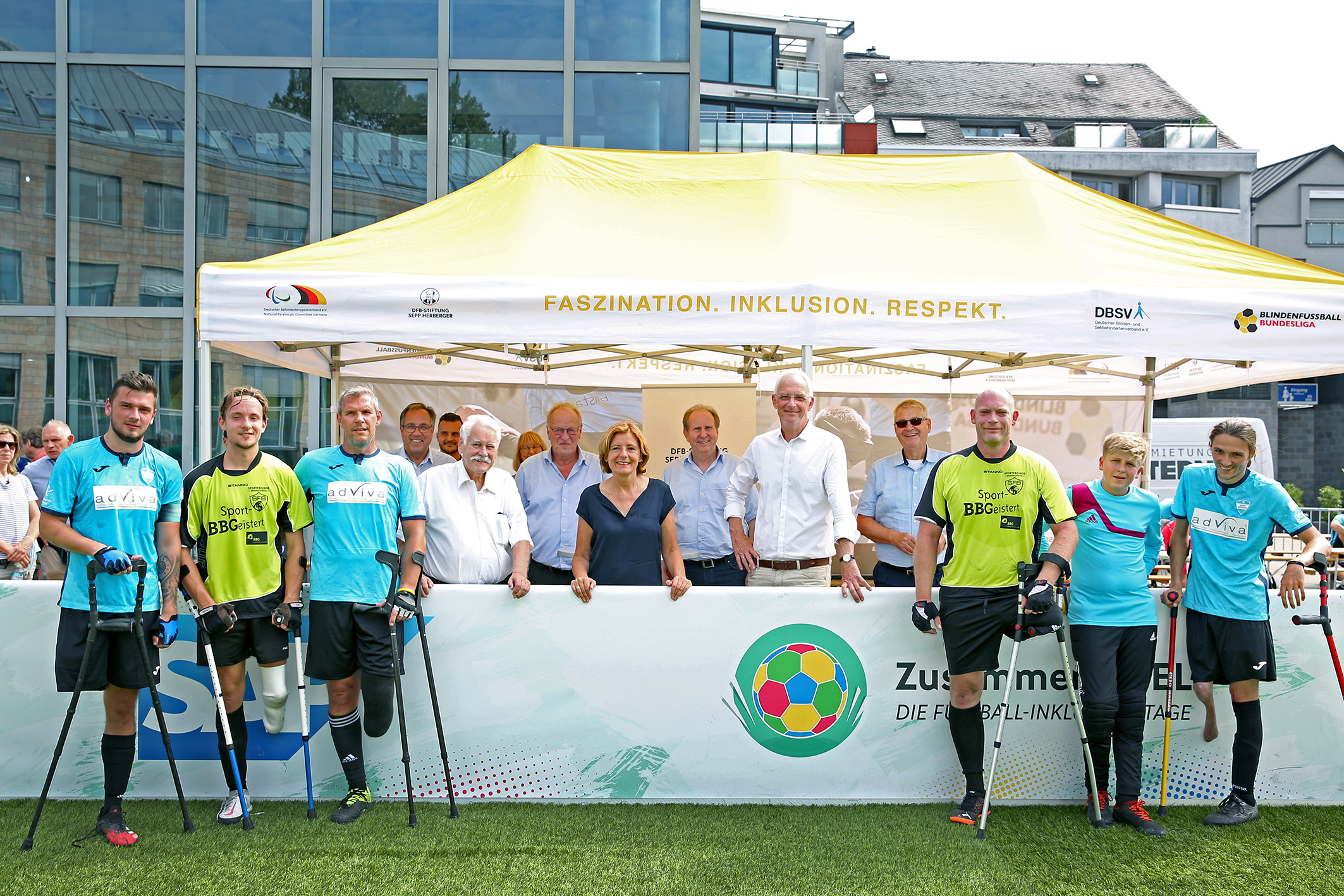 Dass darin viel Wahrheit steckt, davon wollte sich Malu Dreyer am Sonntag selbst ein Bild machen. Die rheinland-pfälzische Ministerpräsidentin besuchte die Fußball-Inklusionstage „ZusammenSPIEL“, die von Freitag bis Sonntag auf dem Viehmarkt am Rande der Trierer Altstadt stattfanden. Der 2. Spieltag der Blindenfußball-Bundesliga und erste Partien der neugegründeten Amputierten-Fußball-Bundesliga gehörten wie auch ein inklusives Walking-Football-Turnier zum Programm der dreitägigen Veranstaltung der DFB-Stiftung Sepp Herberger. Großzügig unterstützt wurden die Inklusionstage durch die Unternehmen Volkswagen, Deutsche Telekom und SAP.