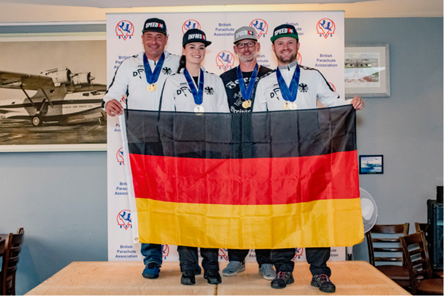 Doppel-Gold für die deutschen Skydiver: Bei der dritten Speed Skydiving-Europameisterschaft, die gleichzeitig der vierte FAI World Cup war, haben Lucia Lippold und das Team um Moritz Friess, Matthias Kraft und Marco Hepp Siege gefeiert.