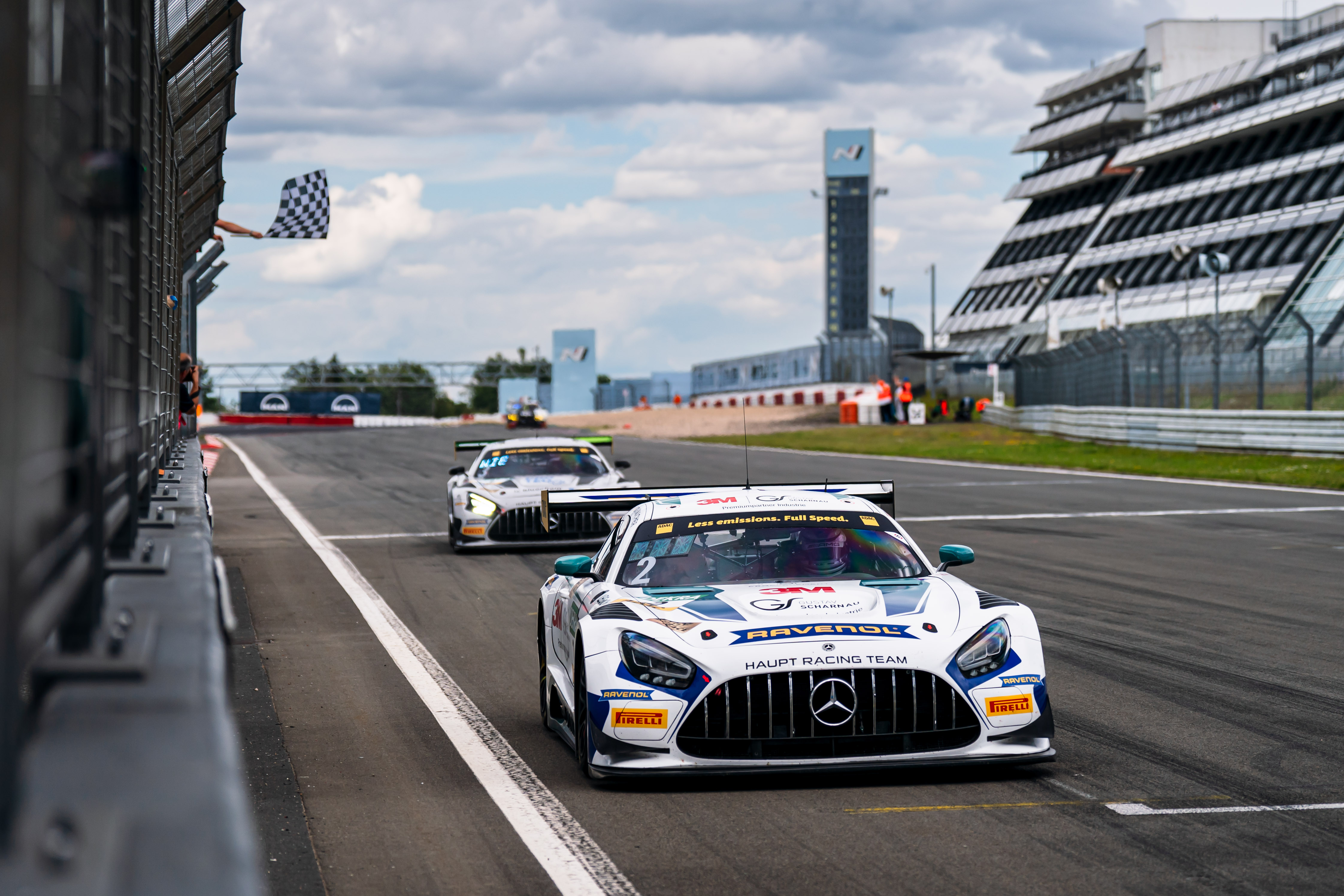 Nürburg. Sternstunde auf dem Nürburgring: Beim 250. Rennen des ADAC GT Masters glänzten die Mercedes-AMG-Piloten David Schumacher (Salzburg) und Salman Owega (Köln) aus dem Haupt Racing Team mit ihrem zweiten Saisonsieg. Nachdem die beiden Youngster schon den Samstagslauf für sich entschieden, machten sie den Doppelpack im Jubiläumslauf über die Sprintdistanz von 40 Minuten perfekt. „Es ist immer etwas Besonderes, bei einem Jubiläum zu gewinnen und sich in die Geschichtsbücher einzutragen. Der Weg dorthin war jedoch nicht einfach, denn über die gesamte Dauer bekamen wir viel Druck von unseren Konkurrenten. Zu Beginn half uns das Zusatzgewicht, die Reifen auf eine gute Temperatur zu bringen. In den letzten zehn Runden war der Grip deutlich geringer, aber Salman hat das gut gemacht“, sagte Schumacher, der am Wochenende auch die Trophäe für den besten Starter in der „Road to DTM“-Wertung erhielt. Auf dem Silberrang platzierten sich Finn Wiebelhaus (Obertshausen) und Jannes Fittje (Langenhain) im zweiten Mercedes-AMG GT3 vom Haupt Racing Team. Das Podium komplettierte der BMW M4 GT3 von Maxime Oosten (NL) und Leon Köhler (Erlenbach am Main/FK Performance).