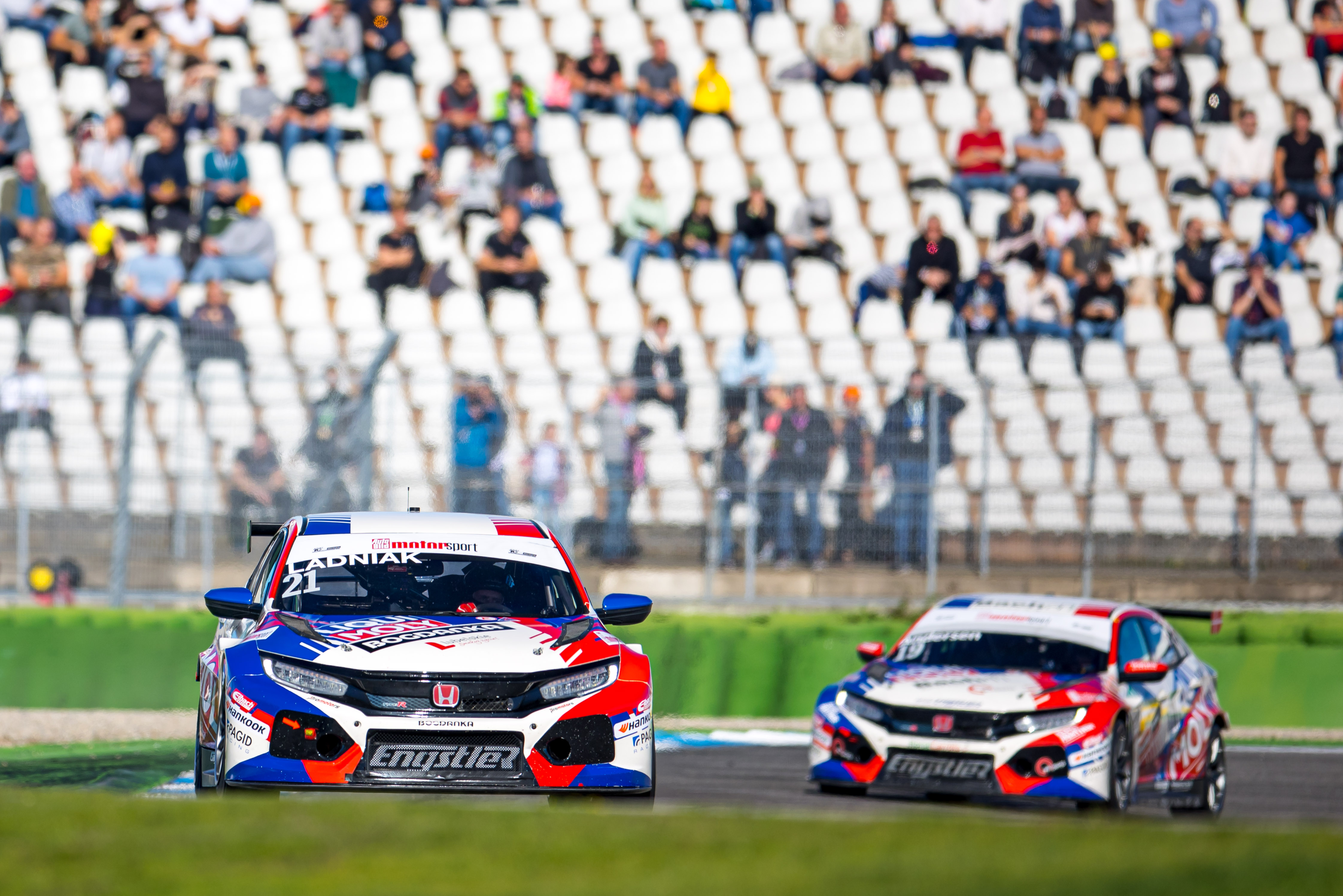 Auch der vierte Titel der ADAC TCR Germany Saison geht an das Liqui Moly Team Engstler. Junior Szymon Ladniak (19, Polen, Liqui Moly Team Engstler) hat das Samstagsrennen auf dem Hockenheimring für sich entschieden und sich durch diesen Sieg die Junior-Wertung der ADAC TCR Germany gesichert. Sein ärgster Konkurrent René Kircher (22, Hünfeld, ROJA Motorsport by ASL Lichtblau) kam im Hyundai i30 als Vierter ins Ziel und kann den Polen im Saisonfinale am Sonntag nicht mehr abfangen. Nach 17 Runden überquerte Ladniak die Ziellinie vor seinem Teamkollegen Martin Andersen (28, Dänemark). Der Däne steuerte seinen Honda Civic vom fünften auf den zweiten Platz und steht auch im 13. Saisonrennen auf dem Podium. Am Sonntag kann der TCR-Champion seinen Rekord perfekt machen. Noch nie zuvor hatte ein Fahrer alle Saisonrennen auf dem Podium beendet.