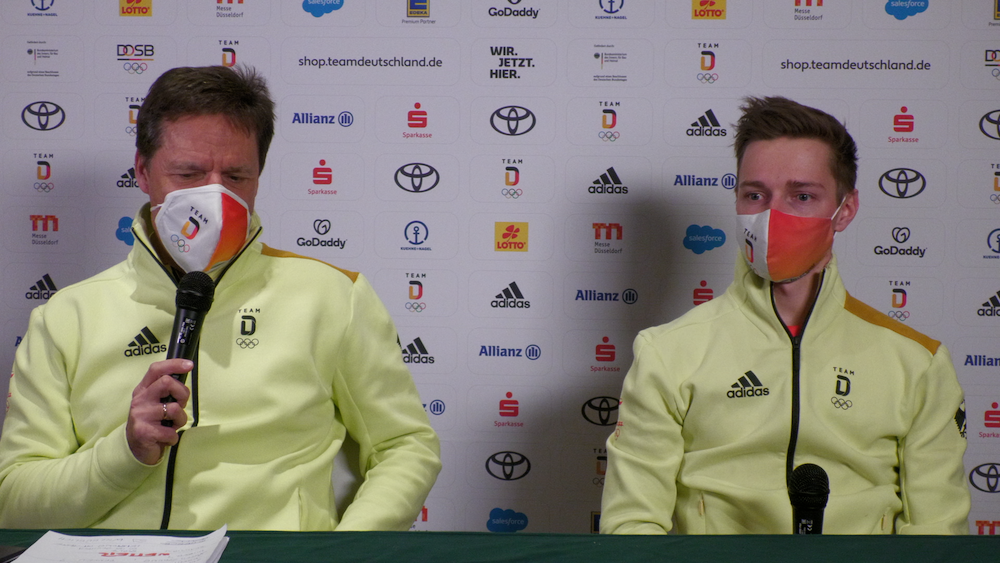 Kombinierer Manuel Faißt spricht auf der täglichen Pressekonferenz des Team Deutschland über die Zeit in Peking und blickt auf das Staffelrennen am Donnerstag.