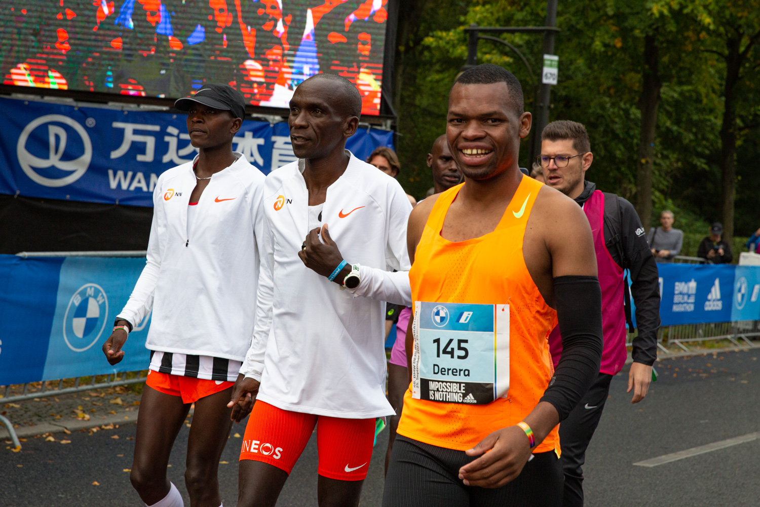 Nyasha Derera beim Berlin Marathon 2022 mit Weltrekordhalter Eliud Kipchoge